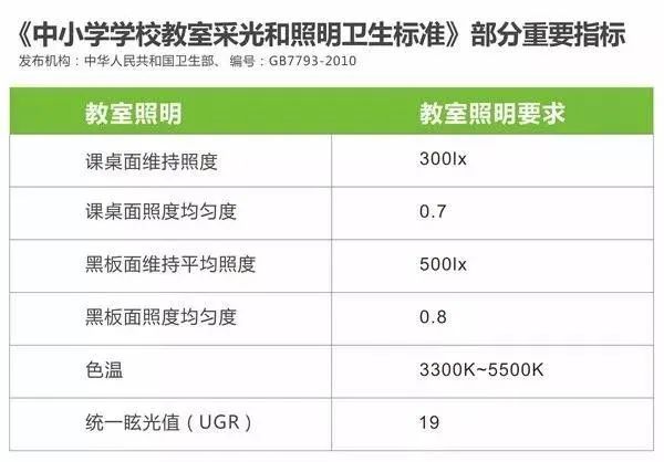 以學(xué)校為例,《中小學(xué)校教室采光和照明衛(wèi)生標(biāo)準(zhǔn)》GB7793-2010規(guī)定中有: