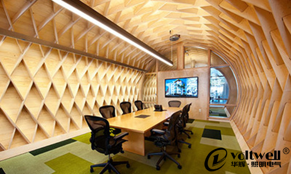 很多人都會認為會議室是很簡單的照明設計,只要能夠照亮空間就行了。其實不然,會議室的照明設計應該鼓勵交流和創(chuàng)新。會議中最主要的視覺任務是觀察面部,照明應該通過避免陰影和對比,清晰地表現(xiàn)人的面部表情。