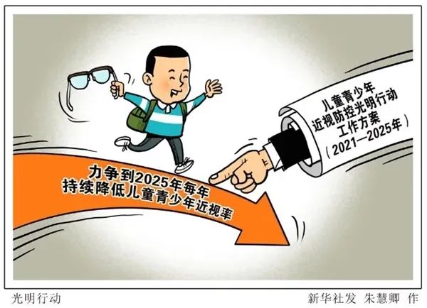 2021年5月份,教育部辦公廳等15部門聯(lián)合印發(fā)《兒童青少年近視防控光明行動工作方案(2021—2025年)》明確了近視防控光明行動工作目標。通過合力開展兒童青少年近視防控光明行動,努力克服新冠肺炎疫情影響,健全完善兒童青少年近視防控體系,力爭到2025年每年持續(xù)降低兒童青少年近視率,有效提升兒童青少年視力健康水平,如期實現(xiàn)《綜合防控兒童青少年近視實施方案》2030年各項目標任務。