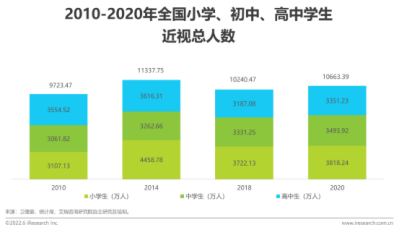 據(jù)《2022年中國兒童青少年視覺健康白皮書》顯示:全國兒童青少年近視防控形勢嚴(yán)峻,尤其是在2014年,全國小學(xué)、初中、高中學(xué)生近視人數(shù)突破一億人,其中小學(xué)生近視率為46%,中學(xué)生近視率為74%,而高中生近視率已達(dá)到83%。在嚴(yán)峻的形勢下,近年來政府高度關(guān)注兒童青少年的近視情況,進(jìn)一步強(qiáng)化了兒童青少年近視防控的政策,并要求各地政府切實落實相關(guān)措施。