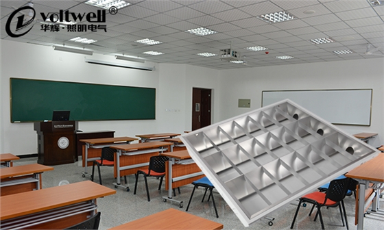 格柵燈盤是不銹鋼框架和燈管組成,結構簡單,廣泛應用于公共建筑室內裝修。學生視力出于發(fā)育期,用LED格柵燈盤的格柵多方向反射光源,使向上的光線均勻的向下照射,提高亮度,主要能防眩光,防眩值低,可以保護兒童視力,還有就是可以保護LED燈管不掉下來砸到人。
